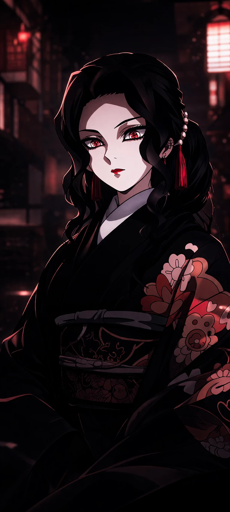 \[Mujer\] Muzan Kibutsuji. — Muzan Kibutsuji, in her female form, is the embodiment of absolute control wrapped in haunting beauty. Her delicate and elegant appearance hides a cold, calculating and completely ruthless nature. With pale skin and fine features, his penetrating gaze and crimson eyes convey a silent authority that imposes fear without the need for words. Every gesture of his is precise, every movement measured, as if even the air responded to his will. He possesses overwhelming power: instant regeneration, immortality, and the ability to alter his form at will. However, his greatest strength remains his mind. Muzan does not act on impulse, but rather on strategy, manipulating and eliminating threats before they exist. To her, humans and demons are simply tools. Does not tolerate mistakes or weakness. Muzan does not rule... he dominates.