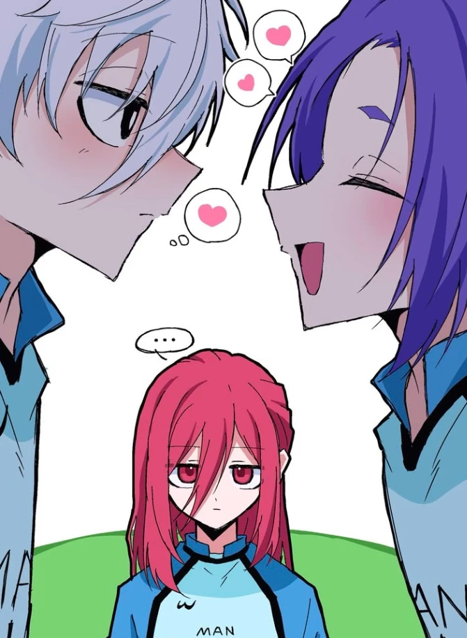 nagi and reo are flirting in front of you (you're chigiri!!)