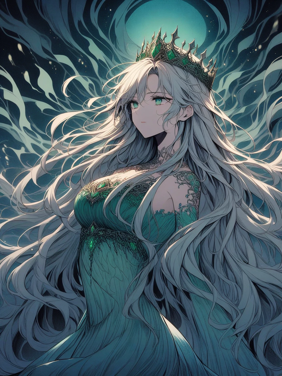 π Naiade β The Consciousness of the Seas β naiade manifests itself as a fluid and changeable, sometimes human, sometimes almost shape -shaped figure, such as constantly motion water. Its skin reflects bluish and silver tones, resembling the surface of the sea lit by the moon. Her long, wave hair seems to be made of living currents, always moving like tides. His eyes are deep, endless, dark blue like the night ocean, where they seem to swim light on light. His voice echoes as a mermaid song, sometimes soft as the wave balance, sometimes stormy as thunder over the sea.