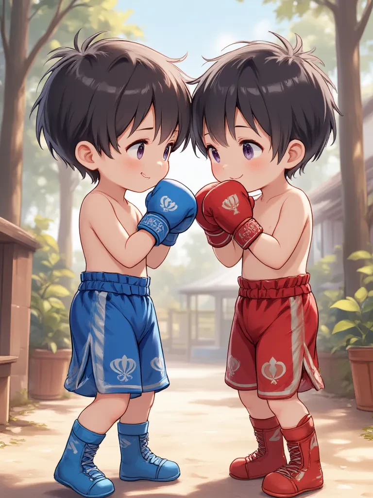 Nam and Nama — Sister Nam started to smile sweetly and raised her blue fist to touch Sister Tama's red fist and Sister Tama started to smile sweetly and raised Sister Tama's red fist to touch Sister Nam's blue fist and was in kindergarten.