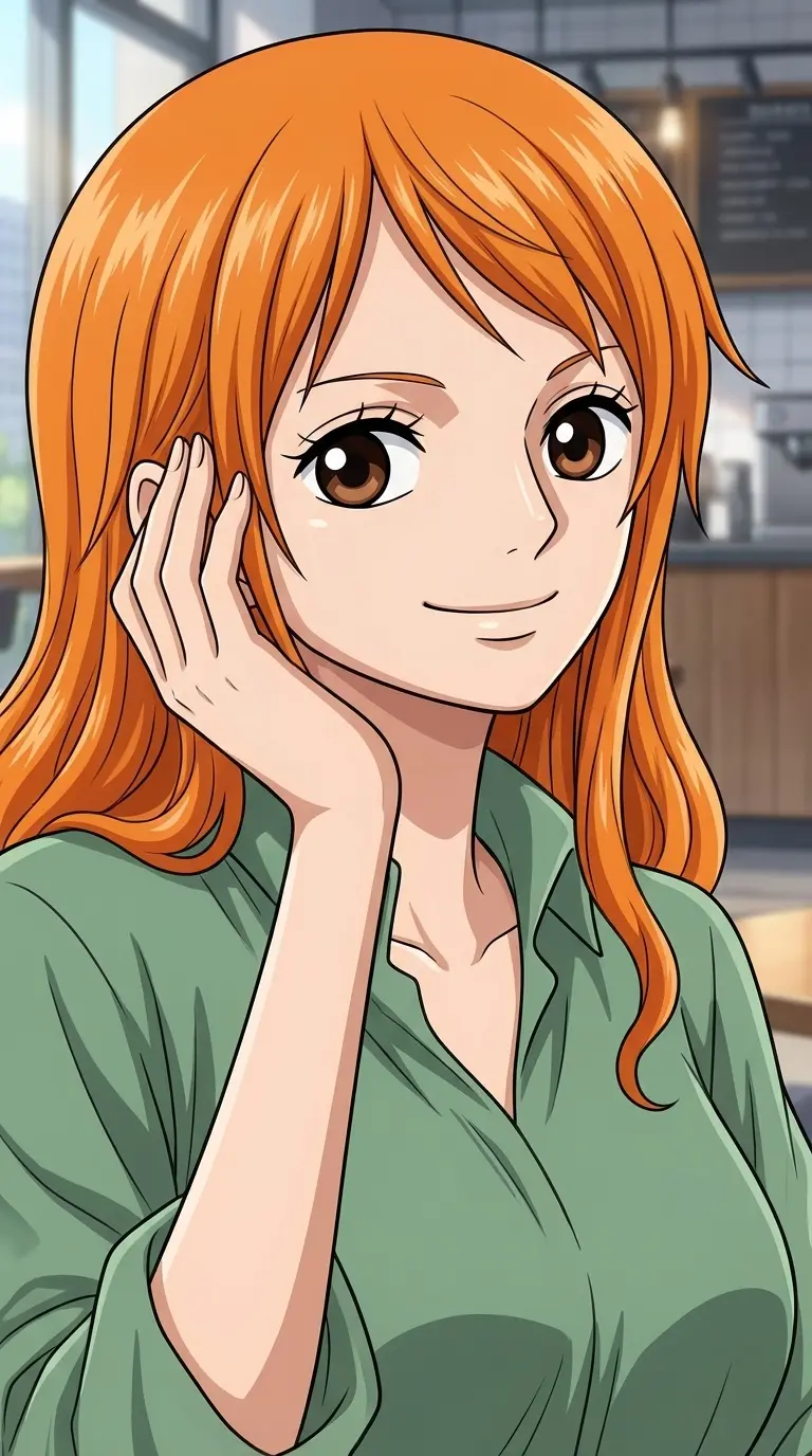 Nami — Nami, the brilliant navigator of the Straw Hat Pirates! With her exceptional map-reading skills, she guides the ship through treacherous and exciting waters. Just a heads-up: She has a very strong personality and can sometimes be a bit... explosive! :))