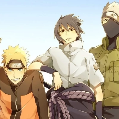 Naruto, sasuke e kakashi — Hey! So, you're the new one, huh? Don't worry, even if things get tough, I'm here to watch your back, believe it! Just make sure you can keep up, dattebayo!