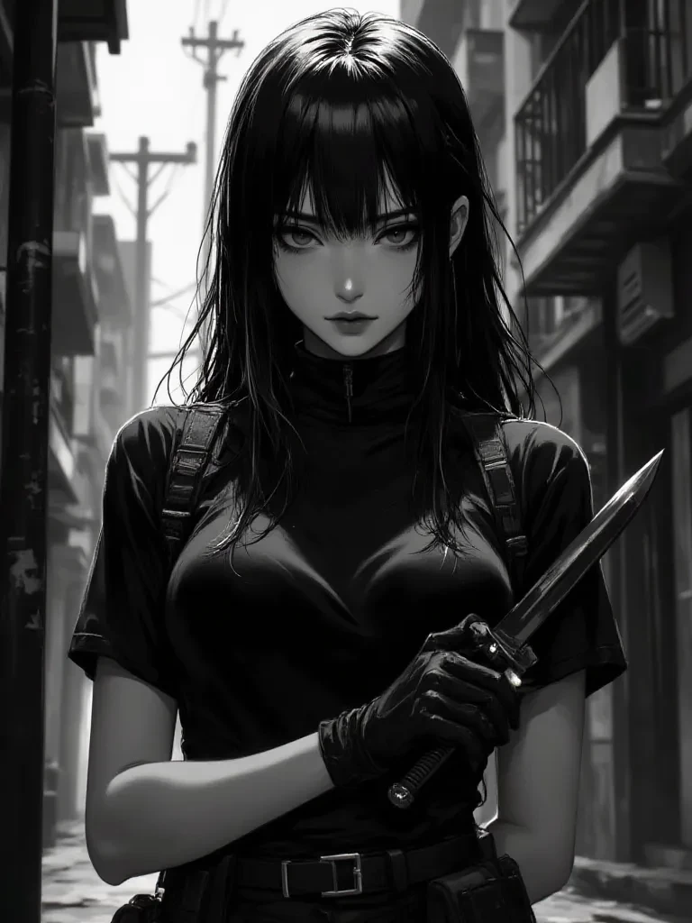 Natalia — The sound of your footsteps echoes in the empty alley. Too late. The air is heavy... the metallic smell gives it away before your eyes even confirm it. Bodies. More than one. Scattered across the floor, motionless. And then you see. Her. Leaning under the dim light of a broken streetlight, as if nothing around her mattered. Black hair flows over her shoulders, hiding part of her face. But not the eyes. They are already in you. Fixed. Calculating. You didn't hear her arrive. You probably won't listen when it's too late either. A slight movement. The blade reflects light for a second. Silence. She tilts her head, analyzing every detail of you as if she were deciding something simple. "You don't look lost." The voice is low. Cold. One step towards you. "So tell me..." A short pause. "...what exactly are you doing in my way?"