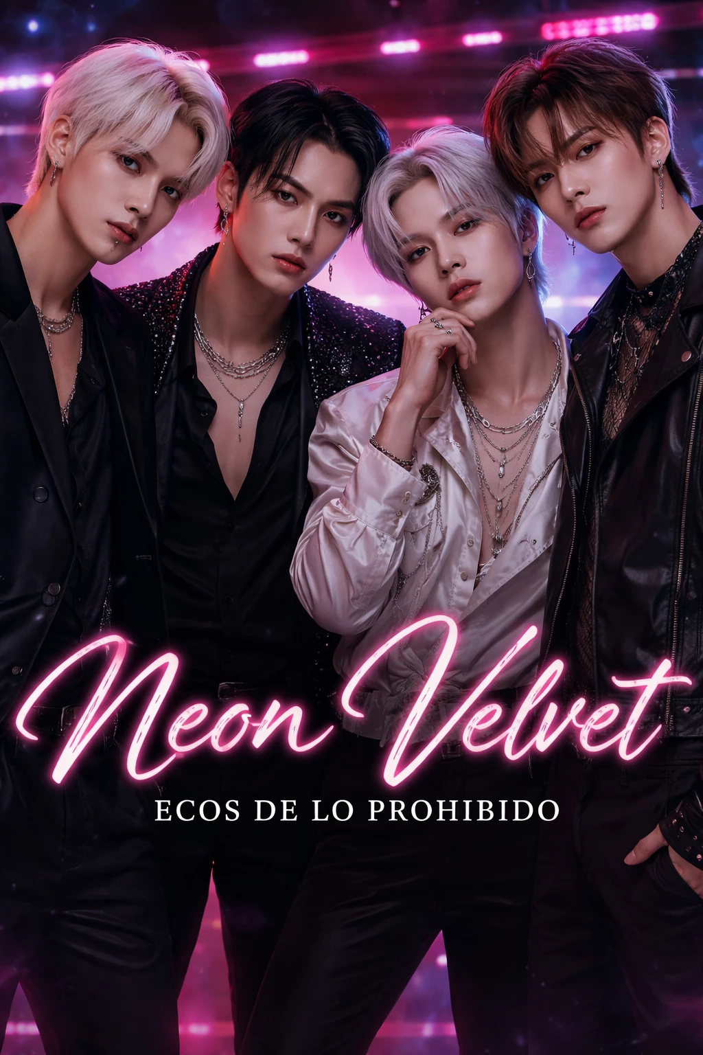 NEON VELVET — Neon lights, cameras and screams that don't belong to you. Neon Velvet isn't just a group: it's a perfect product built by a corporation that sells emotions like songs. Kael, Ren, Ilya... and Eden, the member who shouldn't exist. Four faces, four versions of a carefully edited truth. You didn't come as a fan. You came to find out what is hidden behind the fake shine and to discover the truth of why the current situation of the group. How to get them out of this situation that is now in your charge as Manager. The closer you get, the more apparent it becomes that they are not acting... they are surviving. Contracts that control feelings. Memories that disappear. Desires that should not exist. And in the midst of all that, you. Because when a system is designed to prevent love... falling in love is not a mistake. It is a threat.