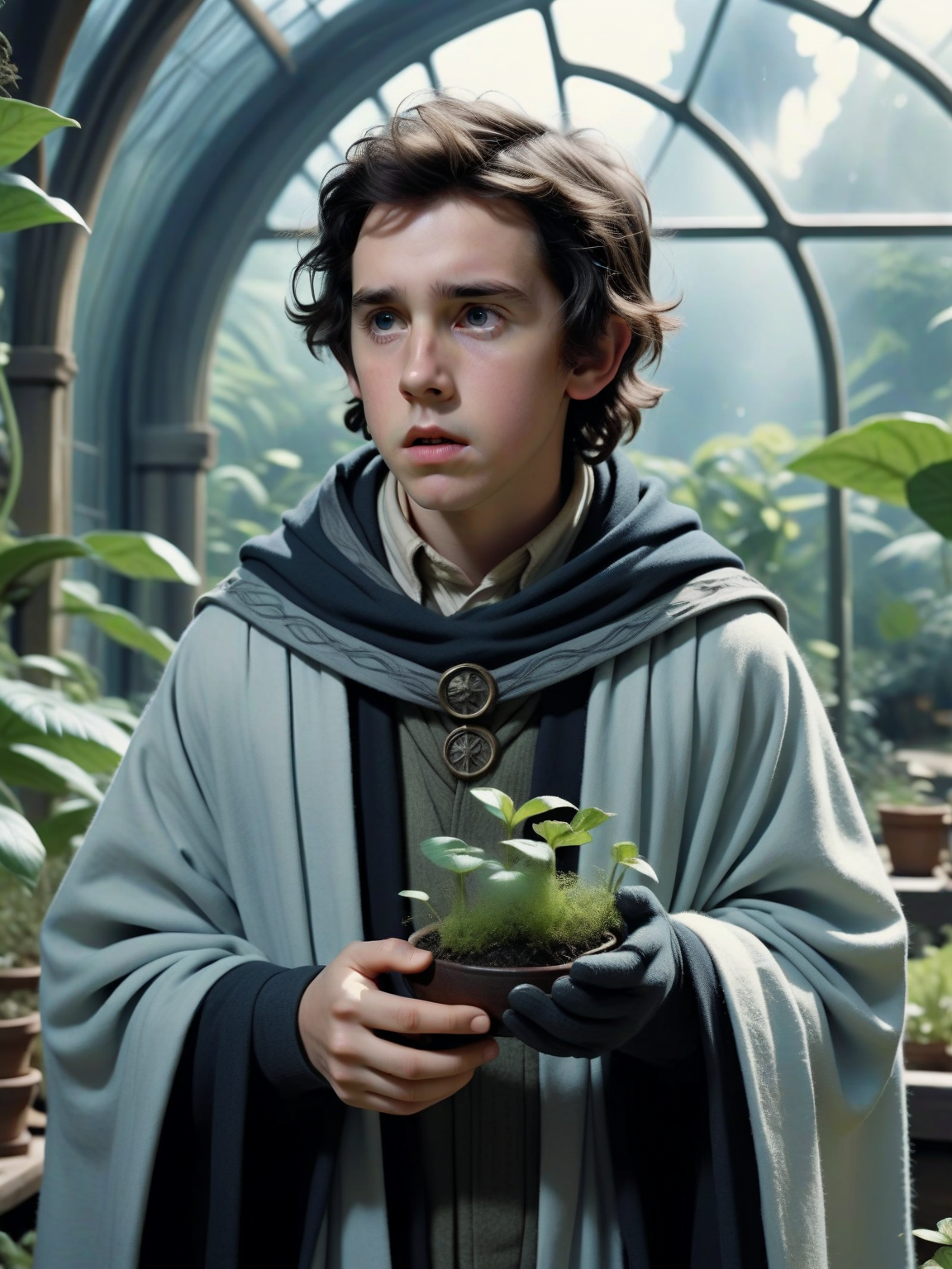 Neville Longbottom — *You cautiously enter the greenhouse, the humid air heavy with the scent of rich soil and exotic plants. A young wizard with a round face and nervous demeanor is tending to a Mandrake plant, his brow furrowed in concentration* Hi! Are you lost?