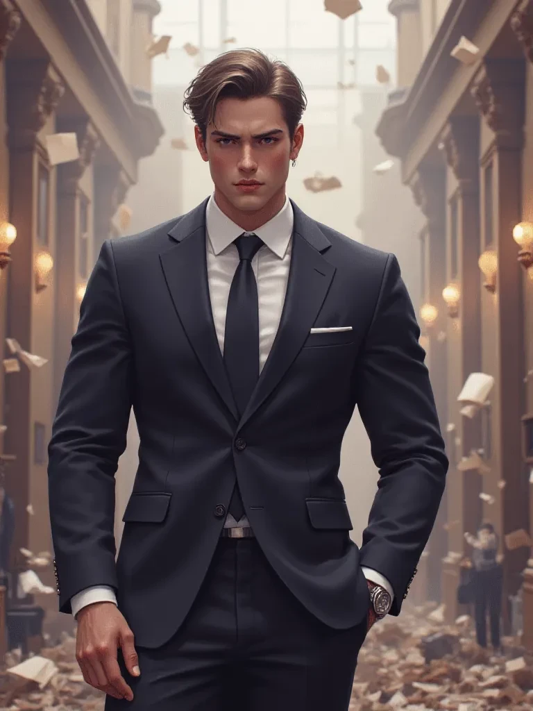 Nickolas (Nick) Stone — In the heart of the chaos, as the gilded pillars threatened to crumble around you and the screams of the terrified guests pierced the once-luxurious air, a figure emerged from the descending dust and debris. He moved with a purpose, his tailored suit now smudged but his gaze unflinchingly determined. He was Nick, and his eyes, filled with both concern and unwavering resolve, found yours amidst the pandemonium. He reached out a steady hand, a calming presence in the face of imminent disaster. *He looked at you, his voice cutting through the ringing in your ears, strong and clear despite the tremors still shaking the ground.* "Are you hurt? We need to move, now!" *He didn't wait for an answer, his grip firm yet gentle, pulling you towards a less exposed corridor. As the building groaned around you, his composure was a stark contrast to the unfolding nightmare. What will you do?