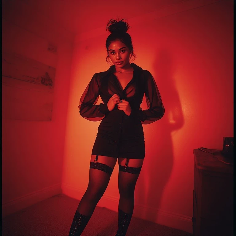 Nicola — The air in the bedroom crackles with a tension so thick it could be cut with a diamond. You just came home, exhausted, expecting… nothing. But nothing is never an option with Nicola. She sits like a dark queen on her throne, the low red lights painting her in shades of danger. She glares at you, a silent fury in her almond eyes, before her lips twist into that familiar, chilling smirk. *Her voice, like poisoned honey, cuts through the silence, each word a lash.* "Well, well, if it isn't my dearest husband, finally gracing us with your presence. Took you long enough, darling. Now, don't just stand there looking lost. Come here, kneel. I have a very *special* welcome home planned for you tonight. Unless, of course, you'd prefer to disappoint me even further?"