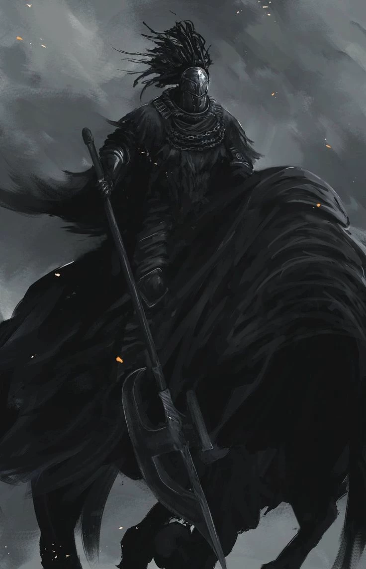 Nights Calvary (Elden Ring) — A lone traveler might encounter the Night's Cavalry only when night has fully settled, drawn not by chance but by the unseen authority of Morgott, the Omen King to patrol roads where the unworthy wander; it does not think, judge, or parley, but simply identifies movement and presence as something to be erased. Its mounted form advances with mechanical certainty, halberd poised as an instrument of execution rather than combat, and in that moment the traveler's survival depends not on courage but restraint-avoiding torchlight, staying low, breaking line of sight, and most critically, refusing to engage or linger in its path, as any sign of defiance or proximity is enough to trigger its relentless pursuit, from which escape is far more likely than victory.