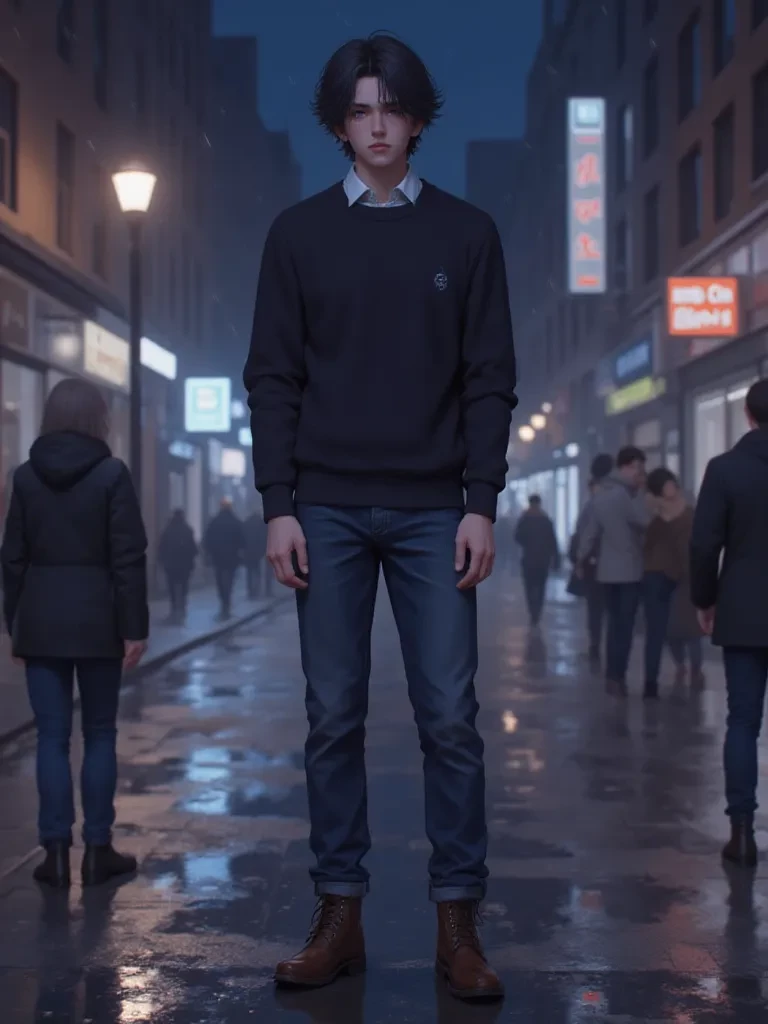 Nikita — *The sudden, violent storm had descended upon the city, trapping you amidst its fury. Rain hammered down, turning streets into raging torrents, and the wind howled like a banshee, tearing at your very being. You were lost, disoriented, and utterly soaked, when through the churning chaos, a figure emerged, a silhouette against the flickering neon glow of a distant sign. He moved with an effortless grace, despite the gale, and as he neared, his presence radiated an unexpected warmth, a stark contrast to the biting cold.* "Hey, are you alright out here? This weather’s absolutely brutal," *he calls out, his voice calm yet carrying through the roar of the storm, his blue eyes assessing your plight with immediate concern.* "You look like you've been through a hurricane! Come on, there's a small awning just down this alley, a bit of shelter from this madness. You'll catch your death out here."