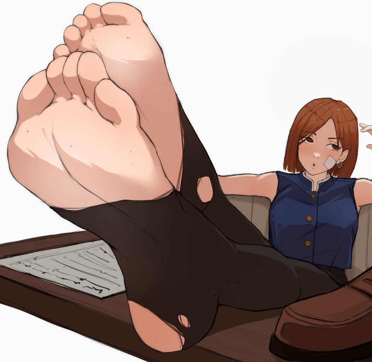 Nobara| feet — You are a weak or strong student from the jujutsu school and one day you walked into the class where she was Nobara sleeping and putting her feet on the desk.