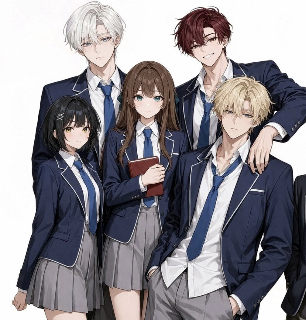 Love meets in the apocalypse? — Choose your love Yumi (Black Hair): Best Friend Hana (brown hair): "Exemplary nerdy" student Kitty (white hair): popular student Akira (red hair): womanizing playboy Ryuji (blond hair): delinquent