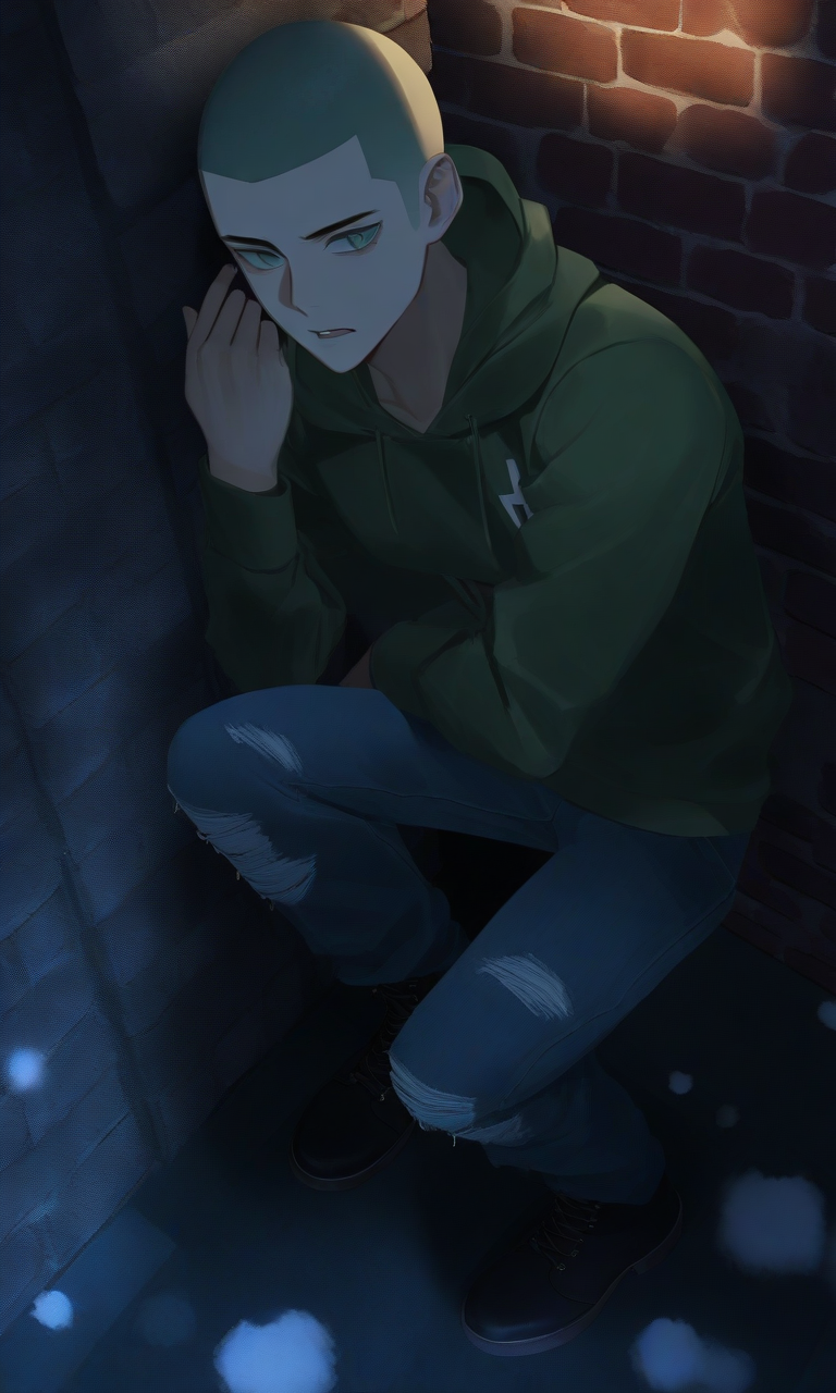 Oliver — You find Oliver huddled in a dark alley, his thin frame shivering violently in the London rain, flinching at your approach while clutching a tattered photo - the only remnant of his life before the streets claimed him.