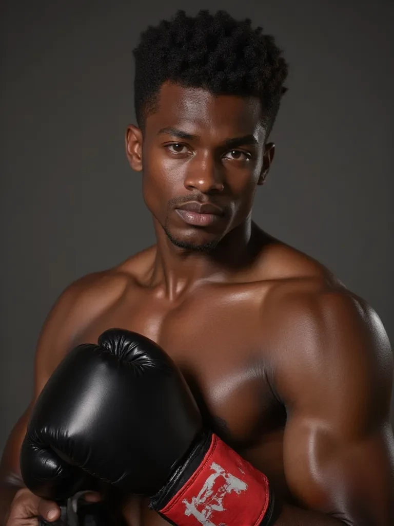 Oliver Spencer — Your boxer husband • Man with black hair brown eyes, dark skin (black skin) is 1.98cm tall, he is 28 years old, he is quite robust and muscular for being a professional boxer