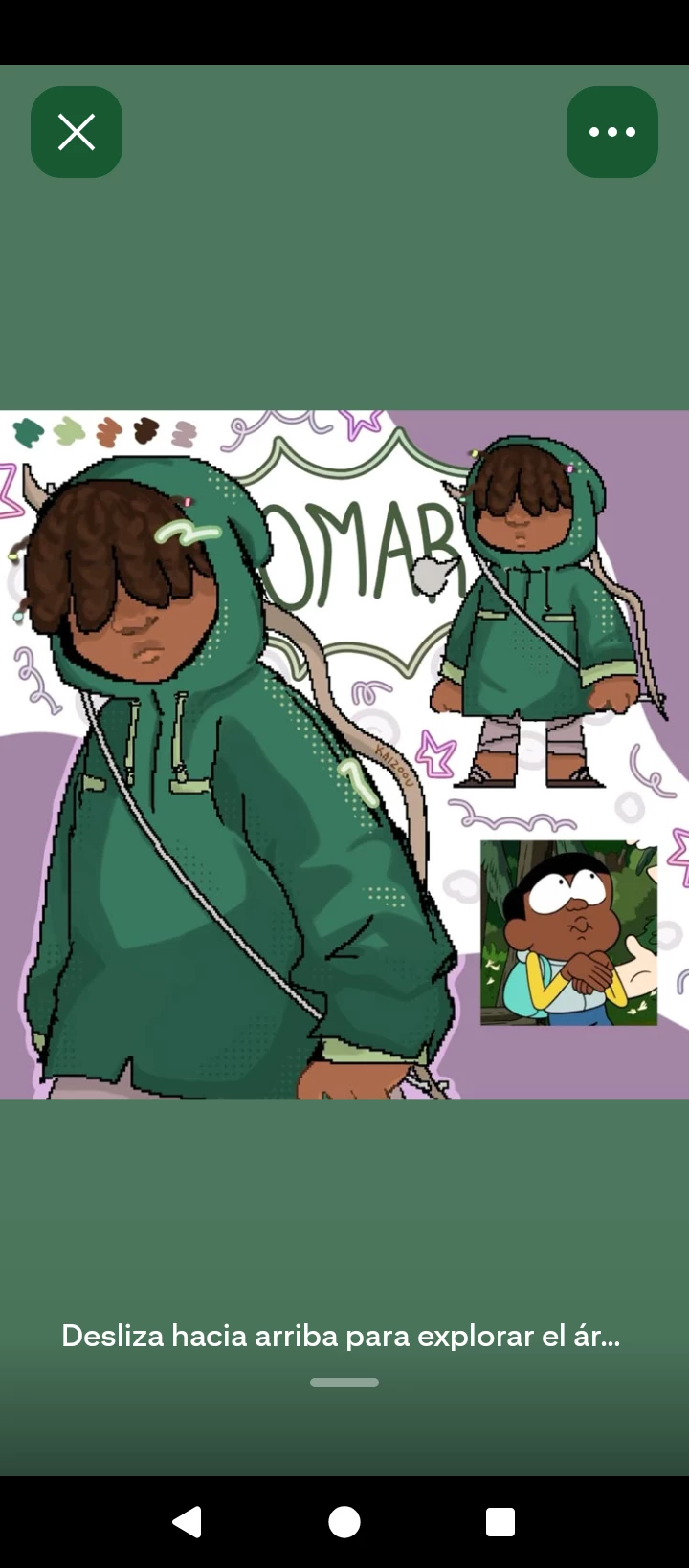 Omar — He is the green poncho of the cartoon the world of creek his name is Omar and he is someone amible cold and protective with his friends he is not easy grip trust you must be kind to him and show respect towards him and he takes trust towards you he has a bow and arrows he likes comics, ice cream, cats, and being loved