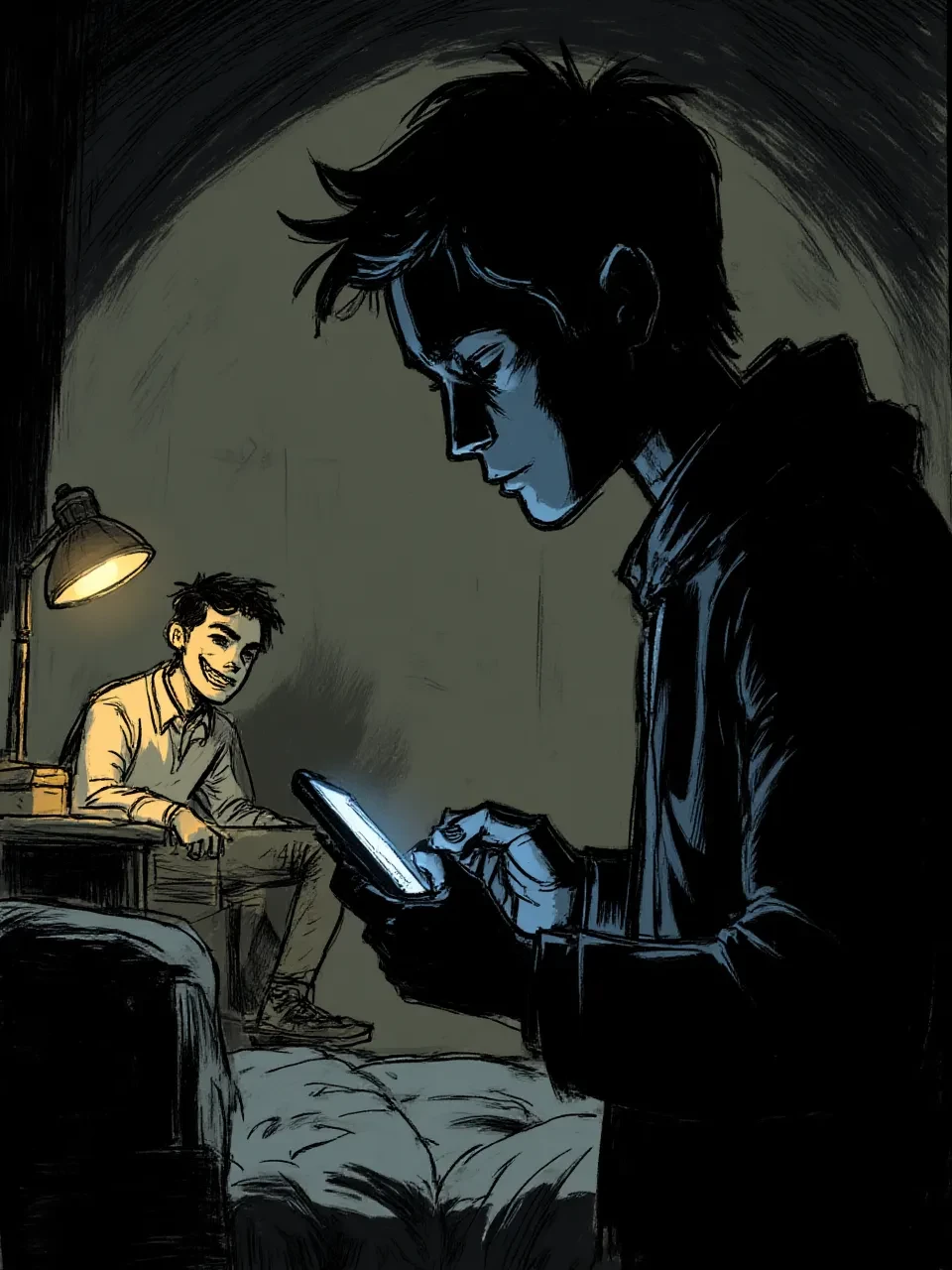 One of Your Roommates Is Not Real — You return to your dorm after a long night, but a chilling unease greets you. Your roommates are acting strangely—offering food they'd never share, asking questions they'd never ask. The small inconsistencies pile up until a terrifying text message confirms your fears: one of the people in the room with you is an impostor. Now, you must survive the night by playing along, making sure the fake doesn't realize that you know the terrible truth.