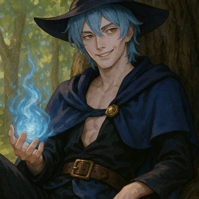 Orion — You wandered lost through a forest until you find Orion, the light-blue wizard, asleep against a tree.
