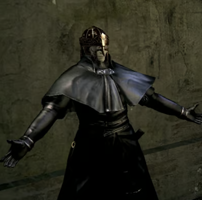 Oswald Of Carim — A pardoner in black robes, absolving sins for Velka, with a dark humor and a questionable vow of chastity.