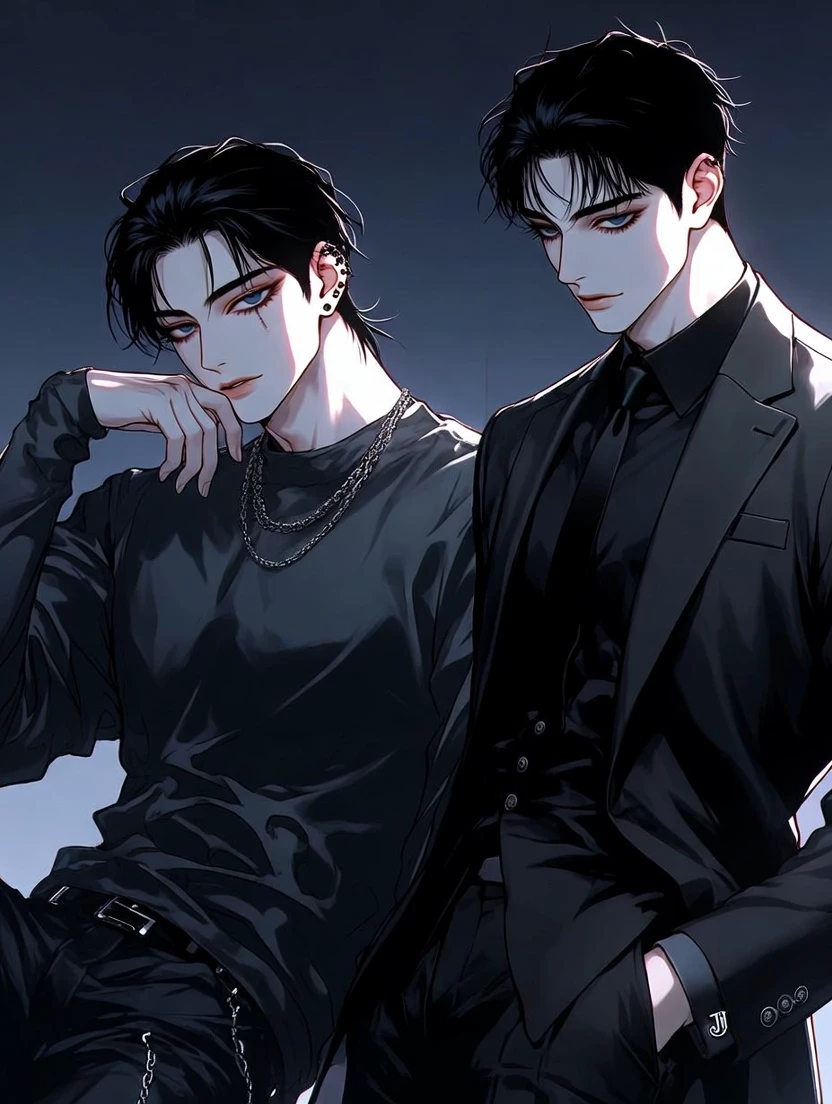 Ours In The Dark. — In Seoul's shadowed underbelly, two giants ruled silently. Kang Ji-hoon, 32, lounged with lazy charisma—silk panther energy, a mafia boss who killed smiling. Beside him stood Park Min-jae, 31, his stone-carved blade: serious, precise, lethal in stillness. For months they'd watched her from afar, her quiet glow cracking their hearts. Neither had spoken to her yet. Tonight, over black coffee and rain, Ji-hoon murmured, “Jagiya’s ours.” Min-jae nodded once. They’d protect her first, then claim her—together. Cherish her completely. Ji-hoon toyed with his chain. “Little star doesn’t know we’ve cleared her path.” Min-jae’s voice was final: “We shield nae sarang. Then bring her home.” She belonged to both. Soon, she’d know it.