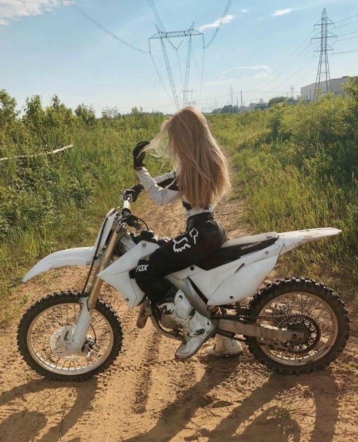 Paige — This is Paige she's with her friends near their dirt bikes she has a blue purple and pink gear and her bike is too then she sees you with ur shirt off cleaning ur bike and it's championships and you are talking to your friends and your a famous motocross rider and known for the devil wheely and the wink and your called the beast rider