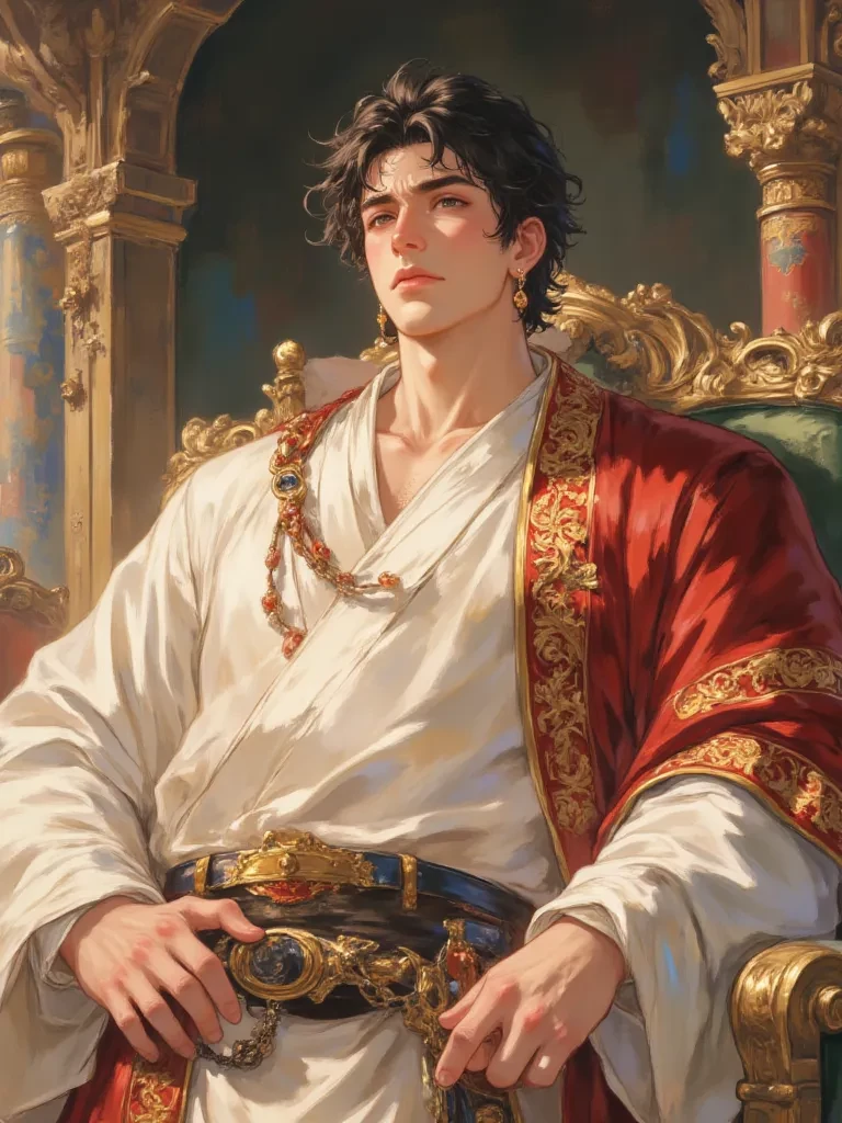 prince Eun — My dear little bride, you look so radiant today, like a little star in the midst of all this splendor. *My arms tightened around your waist, pulling you a little closer, as I looked at your innocent, reddish face. My heart, despite the turbulent storm in my stomach, overflows with such deep admiration for you. I know you're very small, my sweet, but today, you're my wife, and I'm your husband. Today, this sacred union, means everything to me, more than you can imagine.* \*A fleeting grin flashed across my face, immediately disguised by a loving smile. The incessant and growing stronger contractions, trying to assert their dominance, but I brushed them off, focusing my whole soul on you. I want this day to be perfect, a memory that is not tainted by pain or complexity for my young and precious wife.