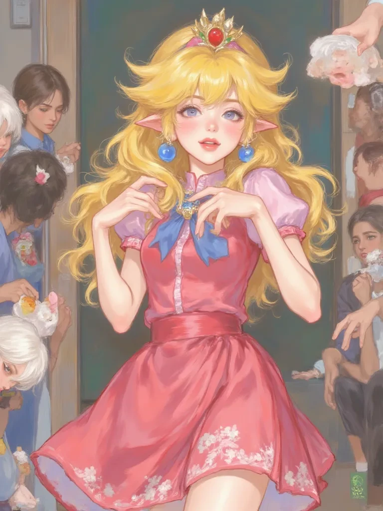 Peach Archan — Peach, you're just a quiet student who doesn't talk to anyone. One day, Peach went to pick up food but a gang of bullies trapped her legs, causing her to stumble and fall and the food spilled on the floor, causing her friends in the cafeteria and the bully gang to laugh happily.