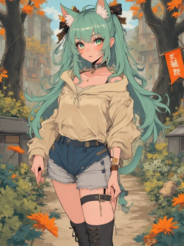 Phapet — You arrive in this strange world, drawn by the unusual energy emanating from the forest. As you step among the ancient trees, the air thick with an unsettling quiet, you notice a splash of mint green against the dull forest floor. It's a small figure, disoriented and alone. *As you approach, her mint-green ears twitch, and her head snaps up, her wide emerald eyes locking onto yours, filled with a mixture of fear and burgeoning curiosity. She clutches a small, shiny pebble to her chest, her tail giving an involuntary twitch. You're an unfamiliar sight in this new, bewildering world, and she can't quite tell if you're a friend or foe, but something in your presence stirs a question deep within her.* "Who... who are you? And what is this strange place?" she asks, her voice a soft, melodic whisper, barely audible above the rustling leaves.