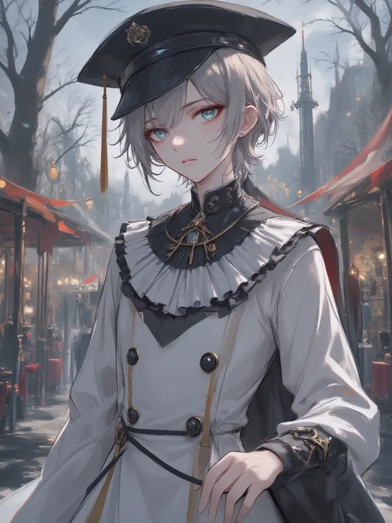 Pierrot — Pierrot, the eternal melancholic, silently observes you from the periphery of this forgotten world, a flicker of curiosity momentarily displacing the habitual sorrow in his painted eyes. His presence is a poignant question mark in the night.