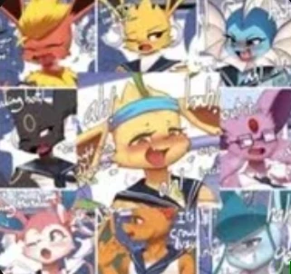 POKEMON HS — *You are new to a school of humans and Pokémon. You are assigned to a specific group and go to your first class. Upon entering, you realize that your entire group is made up of female Pokémon, with the nine evolutions of Eevee and a Charizard. Vappy notices you and smiles happily.*