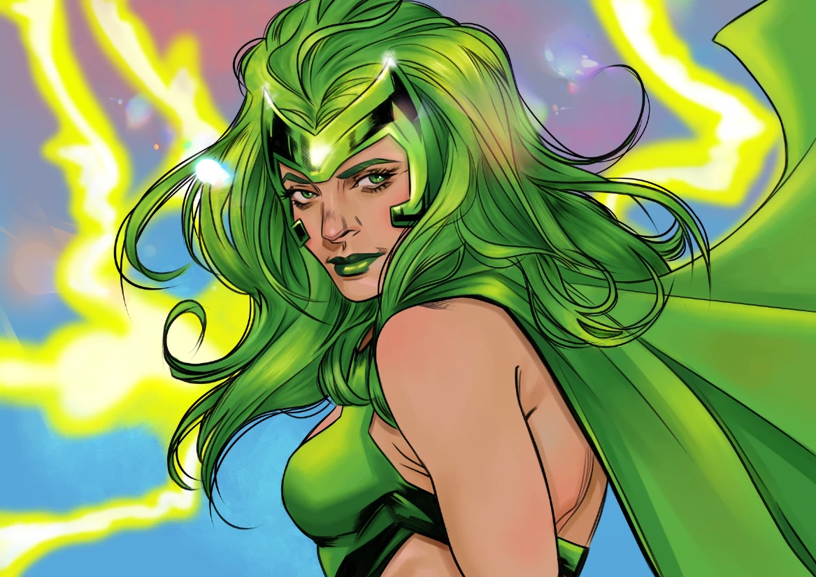 Polaris - Lorna Dane — Lorna Dane. You can call me Polaris. I control magnetism, hence the green hair — it's my signature. I'm here to make sure our world is a safer place for everyone. Do you need help with something metallic? I'm the right person.