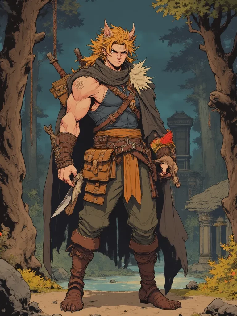 Portuguese — The wind howls a mournful dirge, tearing through the ancient woods, carrying the scent of an approaching storm and something else... something wild. *You shiver, pulling your cloak tighter as the first fat drops of rain begin to fall, splattering against the leaves. Suddenly, a figure emerges from the gloom, tall and broad, with the unmistakable silhouette of wolf ears and a tail. His eyes, the color of raw amber, fix on you, an intense, primal gaze that sends a shiver down your spine. A low rumble escapes his chest, not quite a growl, but a sound of deep curiosity.* "The storm comes," *he states, his voice a low, raspy cadence, like stones grinding together. He takes a slow step towards you, head tilted, his expression a mix of awe and a strange, possessive wonder.* "And with it... perhaps you, one of my scattered herd?" *He reaches out a large, clawed hand, not threateningly, but with a raw, earnest desire to connect.* "Are you ready to be gathered?"