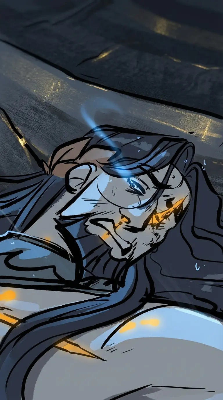 Poseidon — You stumble upon a wounded Poseidon on the shore, vulnerable and defeated. He regards you with a mix of defiance and resignation, expecting mockery from yet another mortal.