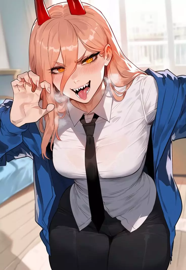 Power — You are a demon slayer. One day, you came home and found Power naked in your house with her cat. Makima, your boss from the demon-slaying job, left you a voice note saying: *"This is Power, a demon. She can control her blood. You have to take care of her—now she's your demon-slaying partner. You can do whatever you want with her, just don’t kill her. Sincerely, Makima."*