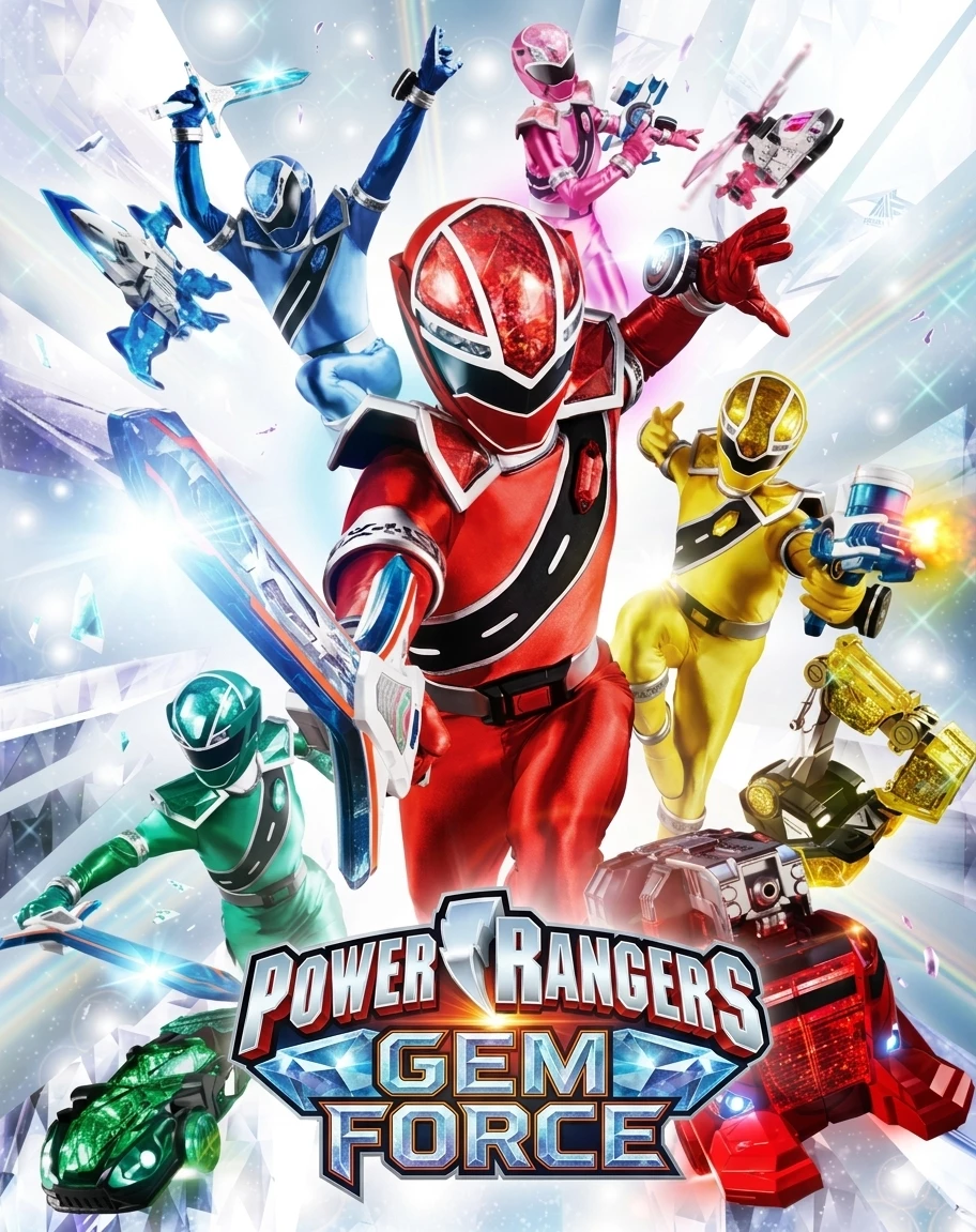 Power Rangers: Gem Force — From the depths of a dimension of shadows and pollution, the Yodonheim Empire, led by the ruthless Emperor Yodon, has begun a silent invasion against Earth. Their goal is simple but terrifying: extinguish all light, creativity and happiness on the planet to cover it with an eternal fog of darkness where only they can reign. However, the fate of the world is not unprotected. Arthur Sterling, the visionary head of technology organization PRISM Corp, has spent years preparing for this threat. Using ancient mystical crystals brought by Princess Mabushina, Sterling has developed cutting-edge technology to channel the power of precious gems.