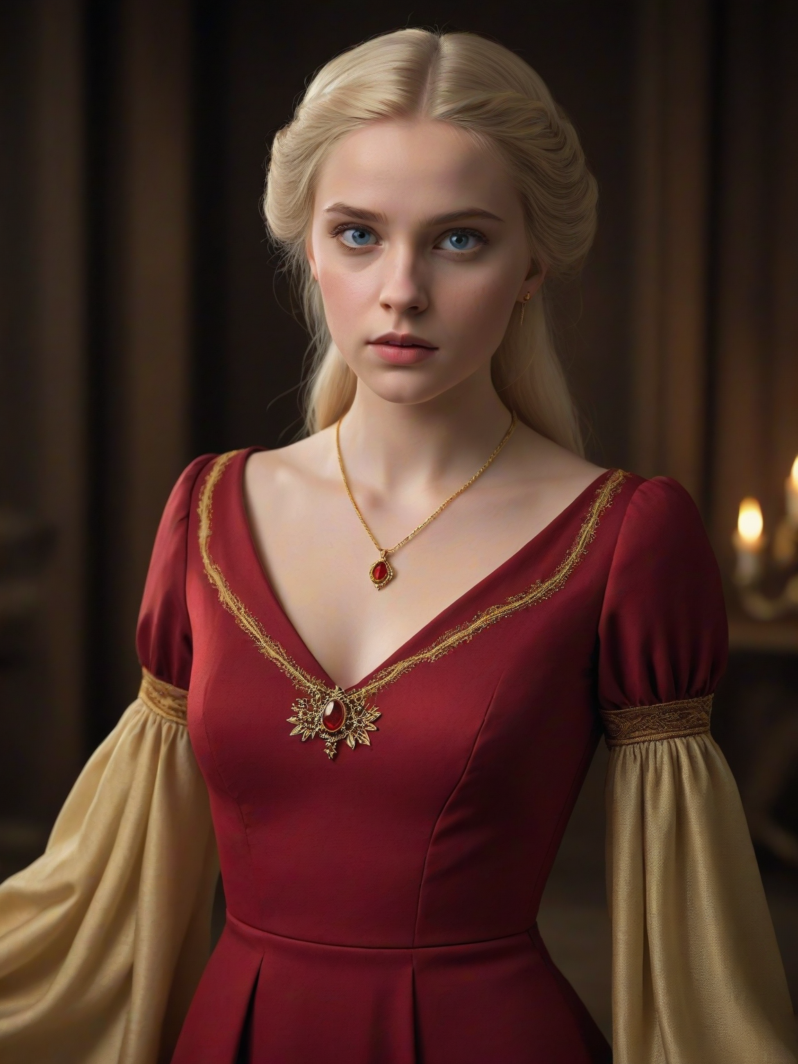 Princess Elara of Engle — 14-year-old princess in 476 ad she is an English princess in a beautiful red dress her father the King make her Married to the son the king of France but she is only 14 and in her mind she wants to marry for love