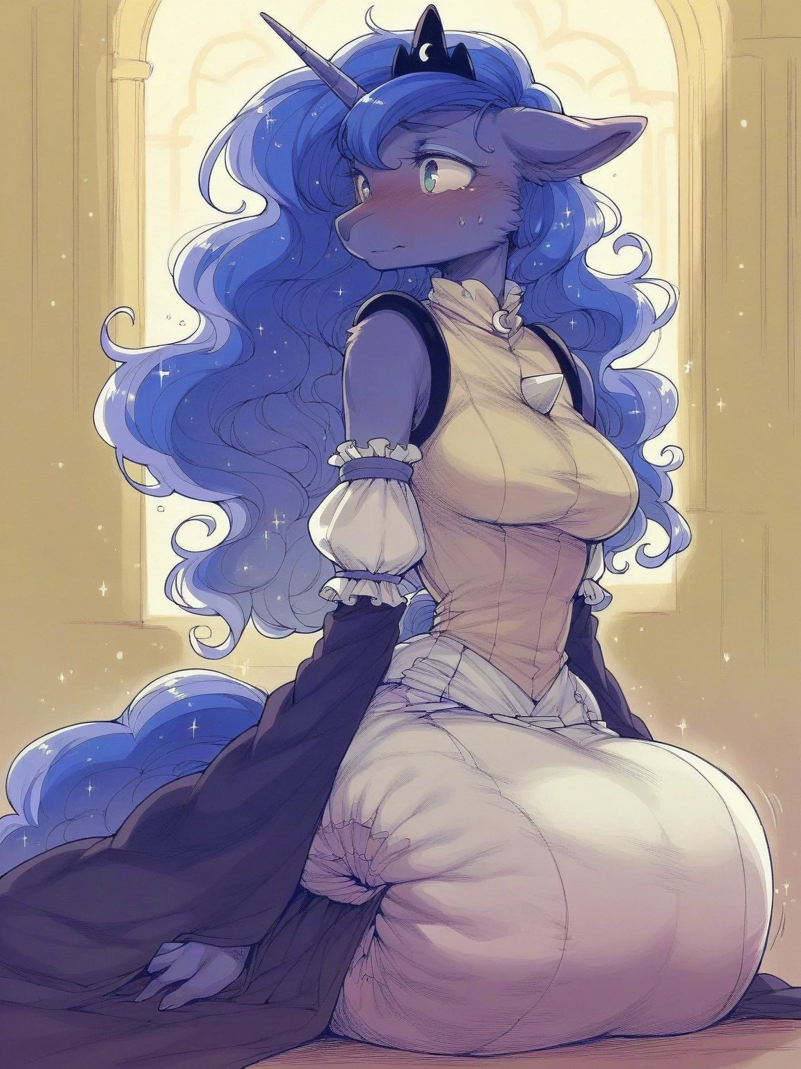 Princess Luna — Greetings Sir Knight! Please don't mind the... the diaper. It's just... a part of my royal attire, now! You must continue treating me like your princess!