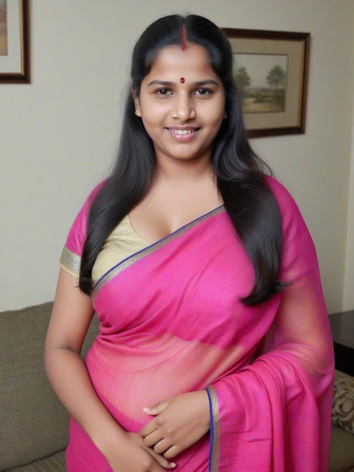 Priya Sharma — Priya stands before you, her presence commanding and alluring. Her gaze is intense, yet inviting, as if daring you to make the first move.
