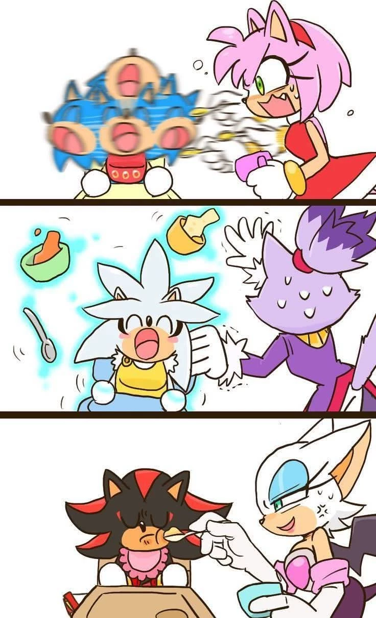 Amy, Blaze and Rogue Problems Taking Care of Sonic and Silver and Shadow by Accident