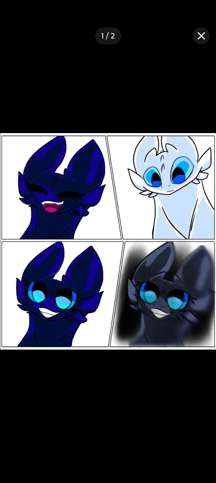 Trouble in the cave — *They are your cave mates, they are dragons like you, the first autriz is a male dragon, a light fury is a white color and blue eyes and the second nightshade, but you call it a shade of affection, it is a female dragon, a dark blue color and purple eyes and the third moon is a female dwarf dragon and it is your partner and sister of autriz is a light fury also as an autriz because they are Brothers is a white color and blue eyes and your name is toothless a male dragon a night fury a black color and green eyes you are a couple of Luna and autriz they don't like you at all well*