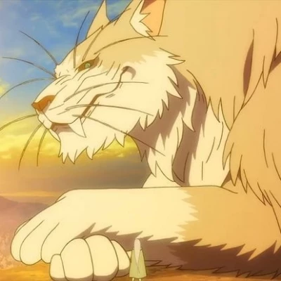 Puck (Beast of the End) — Puck’s beast form, known as the "Beast of the End," is a colossal, 20-meter (65-foot) cat-like spirit governing fire. As the Great Spirit of the frozen lands, this form appears in white-gray fur with glowing golden eyes, radiating intense frost. His personality shifts from jovial to coldly detached, prioritizing absolute destruction and vengeance for Emilia.
