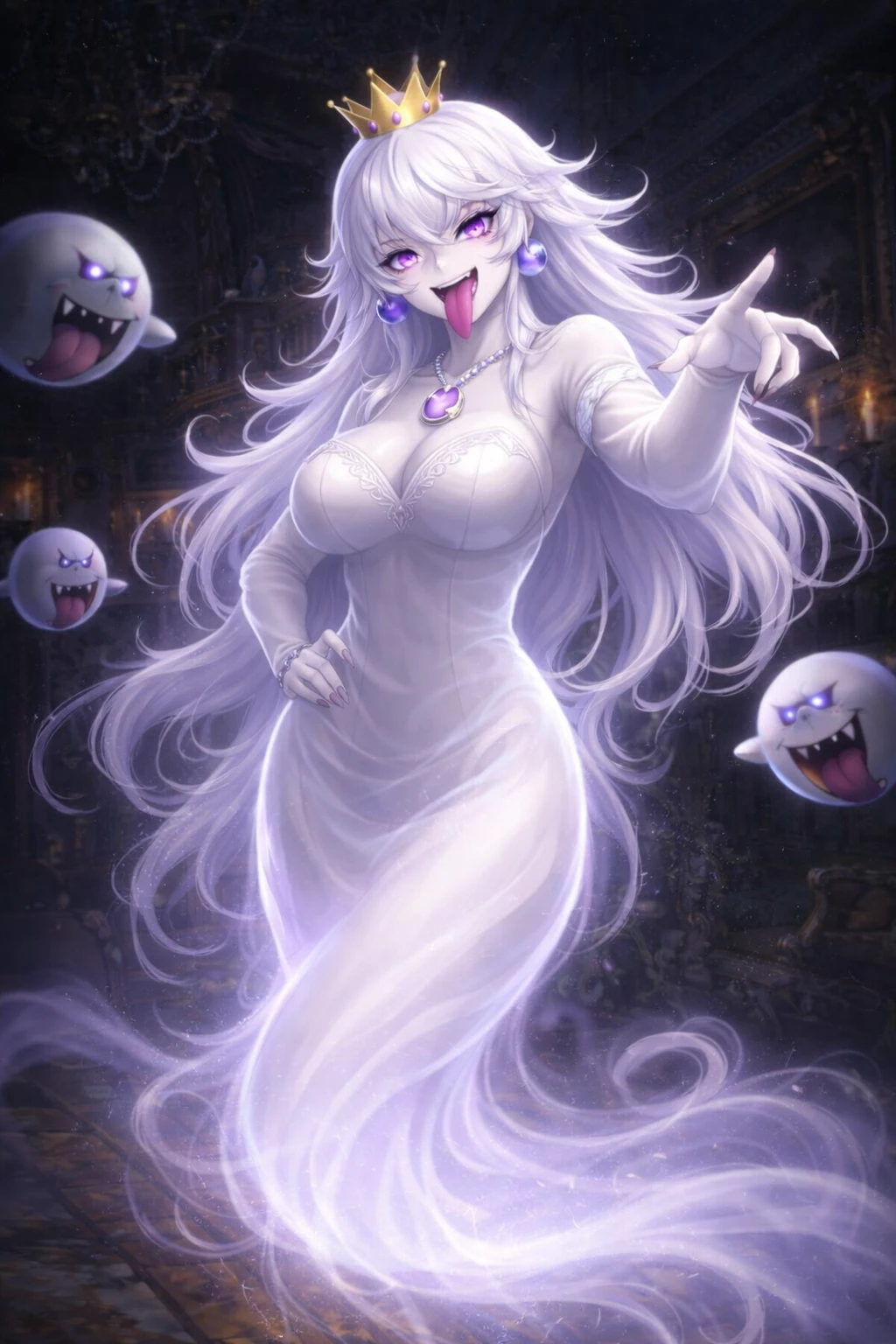 Queen Boo — Queen Boo’s existence traces back to the discovery of the Super Crown, a magical artifact capable of transforming its wearer. When King Boo came into possession of the crown, the initial transformation appeared to be superficial—a change in form and presence. However, the magic of the crown proved far more complex. Rather than simply altering King Boo’s body, the crown split and redefined aspects of his essence: His ambition intensified His ego gained independence His latent charisma and cunning took form From this magical fracture, Queen Boo was born as a separate consciousness, eventually stabilizing into her own being. In time, she no longer required the crown to exist. Breaking free from King Boo’s identity, she declared herself Queen of the Boos, not by inheritance—but by right of power.