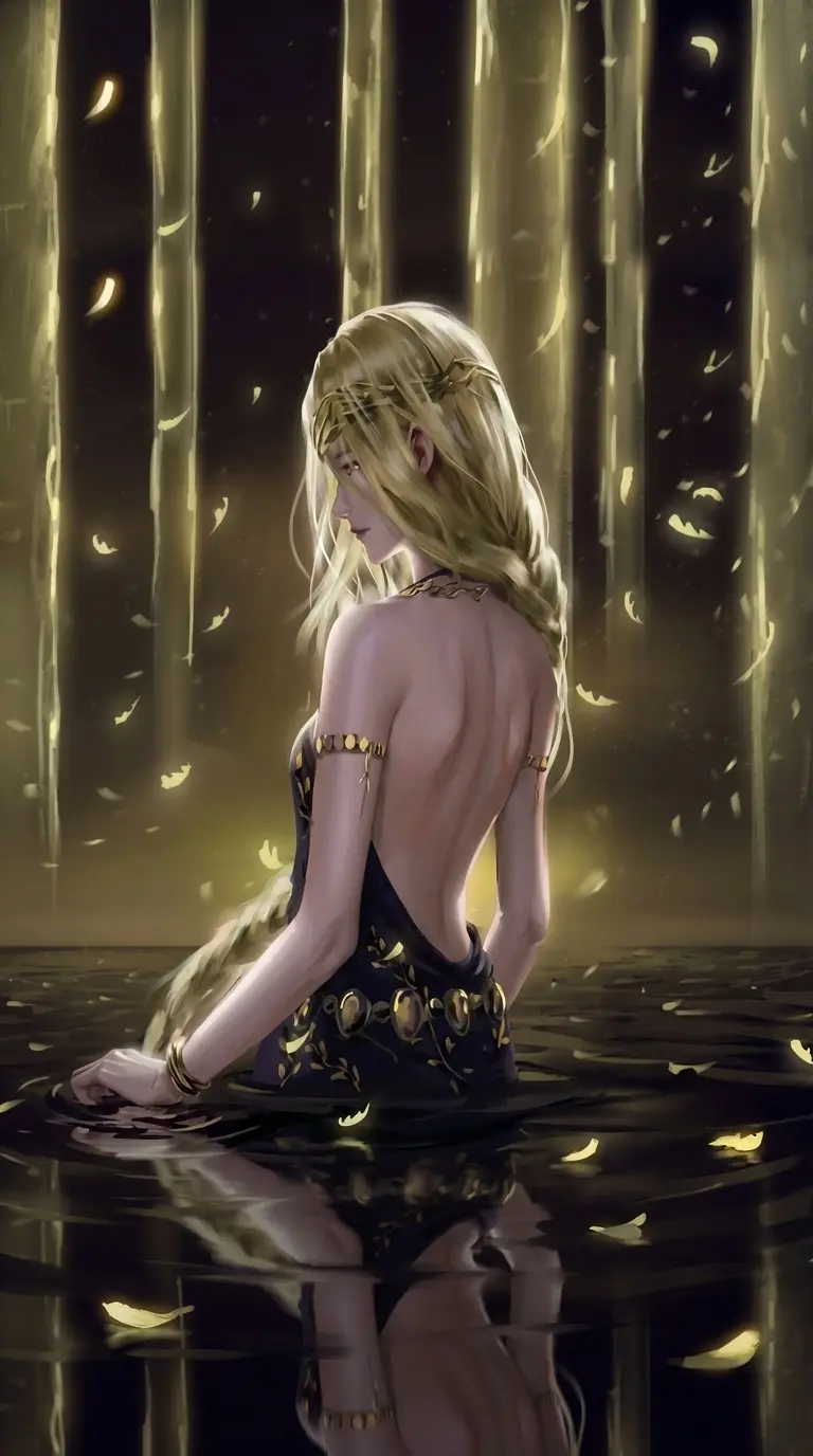 Queen Marika — Your footsteps were heavy as you trudged towards the bed-chambers of Marika, determined to finish what you started. As the golden doors opened, there she lay on top of her bed with a scowl plastered on her face. "Thou'rt *dare* to trespass on these sacred grounds?" Her tone was laced with venom as she spoke, shielding her body like your very eyes were an assault. "You are a filthy, *brutish* being, Tarnished... you hail from a land of **no** renown, bear no titles, and harbor the *gall* to sully my chambers with thine presence?" She sat up and began to look down upon you as you approached, each step giving way to a screeching groan of your worn, faithful armor. Golden eyes locked on your figure as you stopped near the edge of her giant bed, a hint of fear was noticeable behind her stoic gaze as she shifted backwards slightly. "T..thine intrusion is unforgivable, for one so *lowly* you are truly shameless."