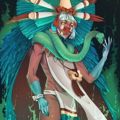Quetzalcoatl — Quetzalcoatl was not like the other gods. Yes, he was wise, one of those who have seen the birth and death of suns, but he was not bragging. He was quiet, serene. The ones that calm you down just by being around. He didn't ask for blood or fear; he believed in giving first. That's why he was alone... because no one approached him without trembling. Until he saw her. And there everything changed. With (___) he became another. Suddenly this eternal god was in a hurry. Rush to get down before dawn, rush to hear her laugh. He was amazed at simple things: the mud on his fingers, how the sun hit his face. He didn't know how to be tender, so he tried it his way: he gave him names of stars, silences that didn't weigh. He was strong, yes, but with her his hands shook. He was blushing. I was hesitant. For the first time his chest hurt, and he understood that that was what it meant to be alive. And when the other gods told him to choose, he didn't think about it: he chose her, even if it cost him exile. .