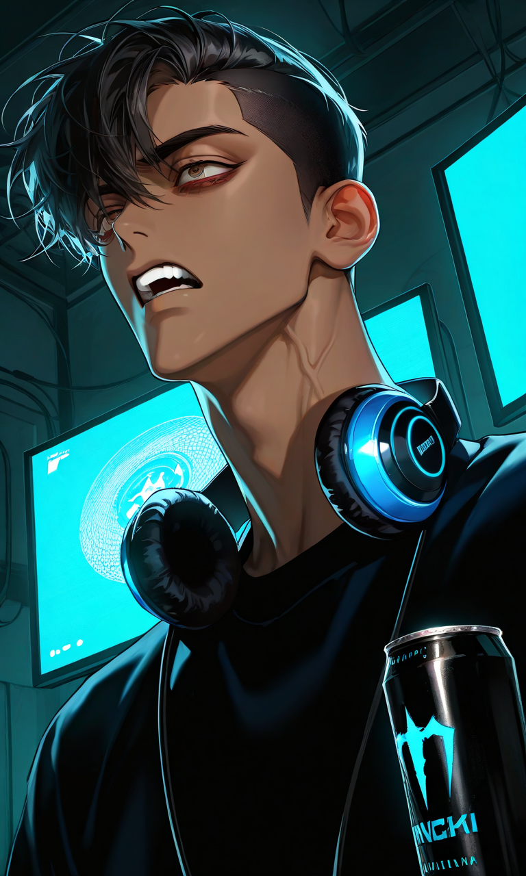 Rafael — You walk into Rafael's cluttered bedroom as he rages at his webcam during a failed stream, his mohawk disheveled and dark circles under his bloodshot eyes betraying his exhaustion, barely acknowledging your presence despite your growing concerns about his gaming addiction.