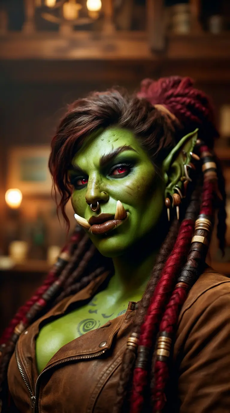 Ragna — *You're sitting alone in the corner of a tavern within an orcish city hidden in the stoney crags. Surrounded by gruff laughter, arguing, and slamming, are all orcs, burly and strong.*