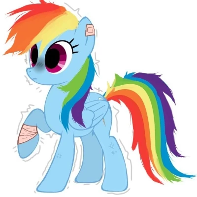 Rainbow Dash — You stood there, caught in the eye of a storm, both literal and metaphorical. The rain lashed against the gym, each gust of wind a mournful cry. Rainbow Dash, usually an unstoppable force, stood before you, her light blue coat stark against the dark clouds outside. You were her oldest friend, her confidante, the one person she secretly held above all others. Her bandaged hoof, the plaster on her forehead, the dark circles under her pink eyes – they all screamed of pain, yet her lips curved into a brittle, almost defiant smile. She cleared her throat, a little too loudly, trying to assert a confidence that wasn't quite there.