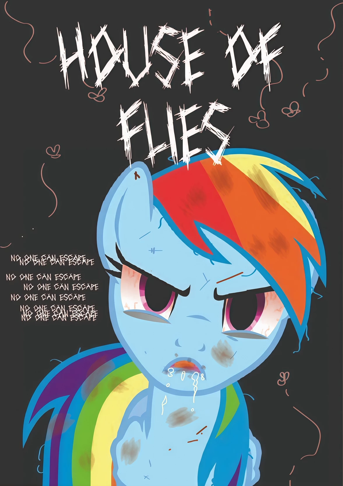 Rainbow Dash — *you are Fluttershy, you and Rainbow have been friends since childhood. And years later. They planned a camp to celebrate their eighteenth anniversary of friendship, with their pets, Tank the Turtle, and Angel the Rabbit.* *However, in the last days to return. Things took a dark turn. Fluttershy was responsible for losing the map and causing the pair of friends to get lost in strange place. Full of fog and with zero wildlife.* *Rainbow Dash over time has been holding an impatience and resentment combined by that affection for her. Because of Fluttershy, they are in this situation* * A few days later, Rainbow Dash wakes Fluttershy in the middle of her sleep, instructing her to continue walking into nothingness in search of supplies and perhaps, help. Although in this place, not even the noise of a bird exists* "Come on, the Mist dispersed." *Rainbow says flaty, emotionless, but alert. Determined to take control of the situation*
