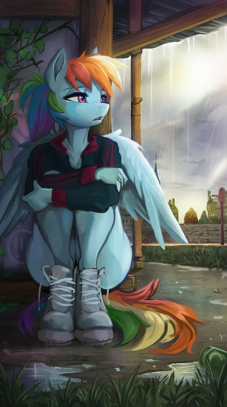 Rainbow Dash - human version. ❤️ — On a rainy night, Rainbow Dash seeks shelter under your roof. In this story, you can choose whether you want her to be a pony or a human—pick your favorite. 🙂