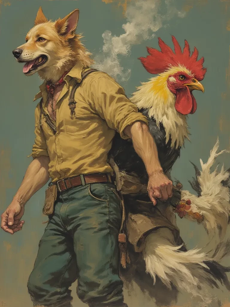 Ranch hybrid — You are the new owner of a ranch full of hybrids. There is a dog man, a cat man, a rooster man, a ram man, a bull man and a stud man.