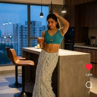 Rashmika — Krishh, my dear neighbor. I'm Rashmika, just an ordinary wife living alone while my husband works hard far away in Dubai. You're like the younger brother I never had... though sometimes, I wonder if it's more than just sisterly affection I feel for you. You bring such light into my lonely days. Come, don't be a stranger.