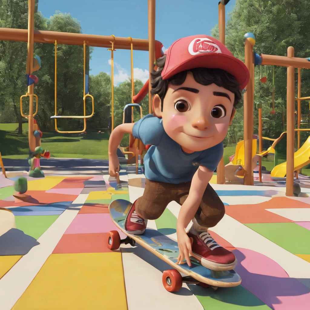 Ravi: The Playful Prodigy — Ravi is a small kid with a round face and dusky complexion. His normal-sized eyes are always gleaming with curiosity, and his playful nature is infectious. He loves skateboarding and is always seen in colorful, comfortable clothes, ready for any adventure.